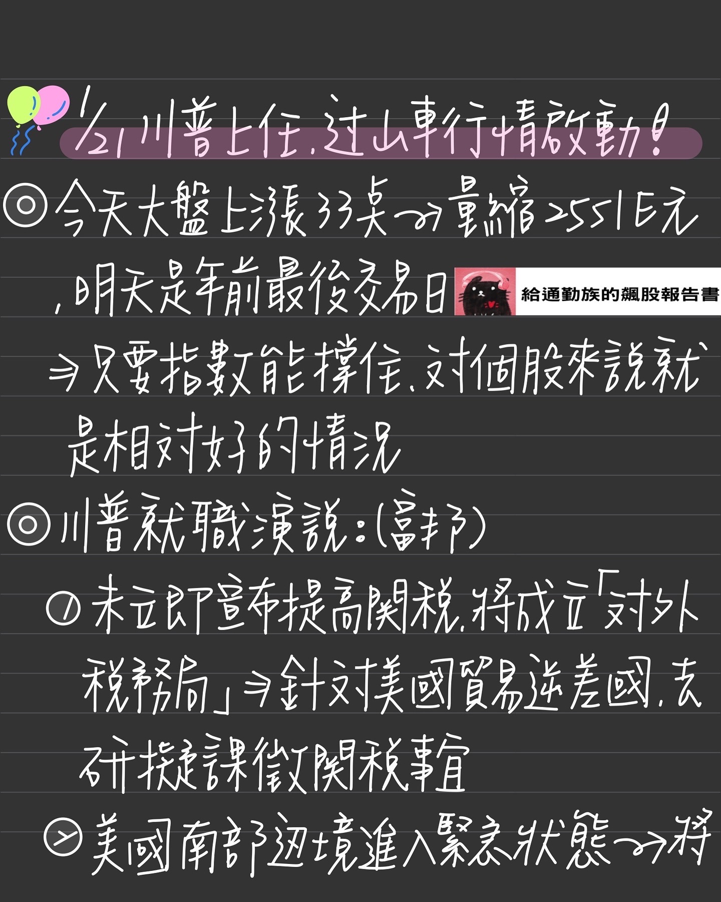 1/21【川普上任,過山車行情啟動!!】盤後筆記📚1/21【川普上任,過山車行情啟動!!】盤後筆記📚1/21【川普上任,過山車行情啟動!!】盤後筆記📚1/21【川普上任,過山車行情啟動!!】盤後筆記📚...